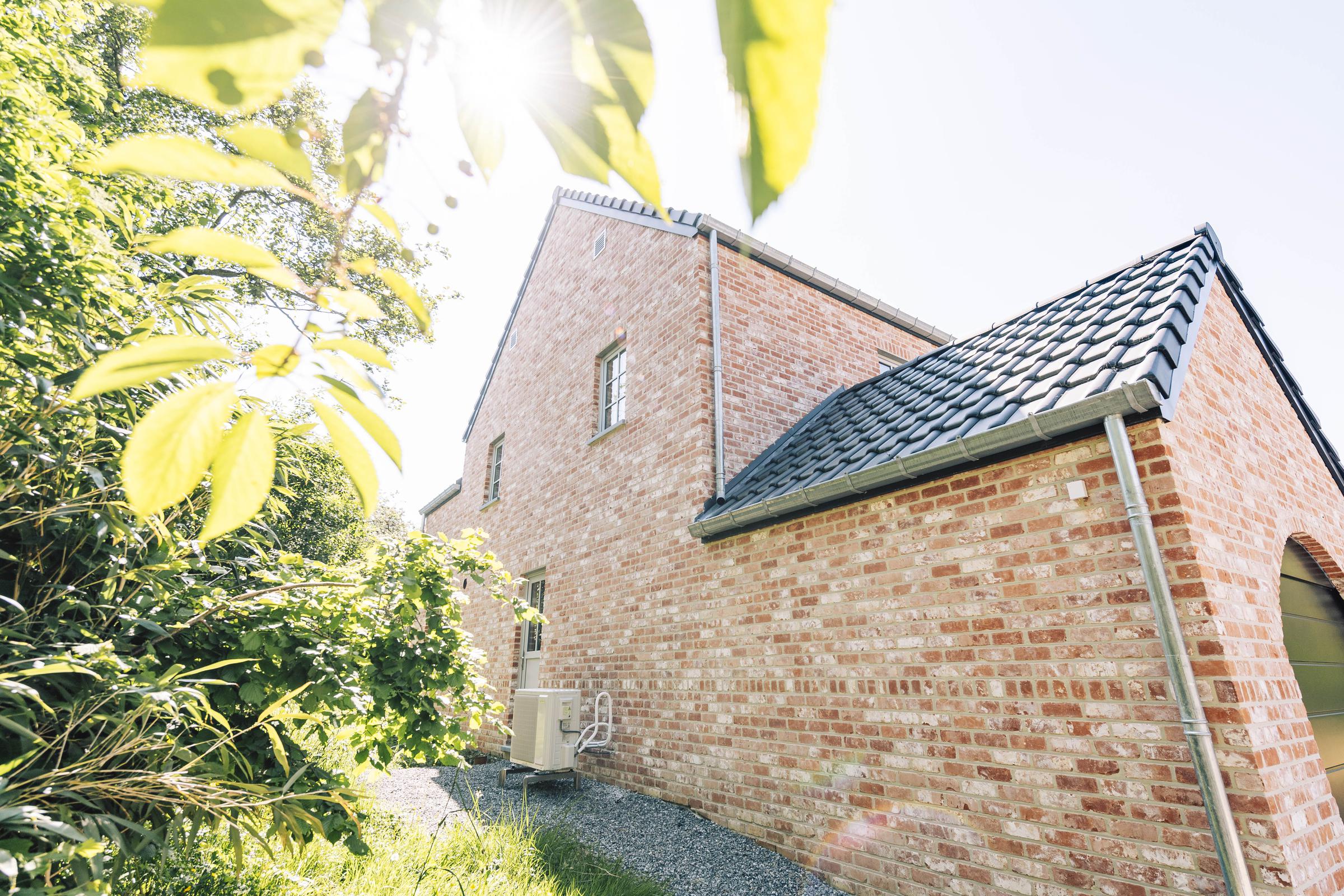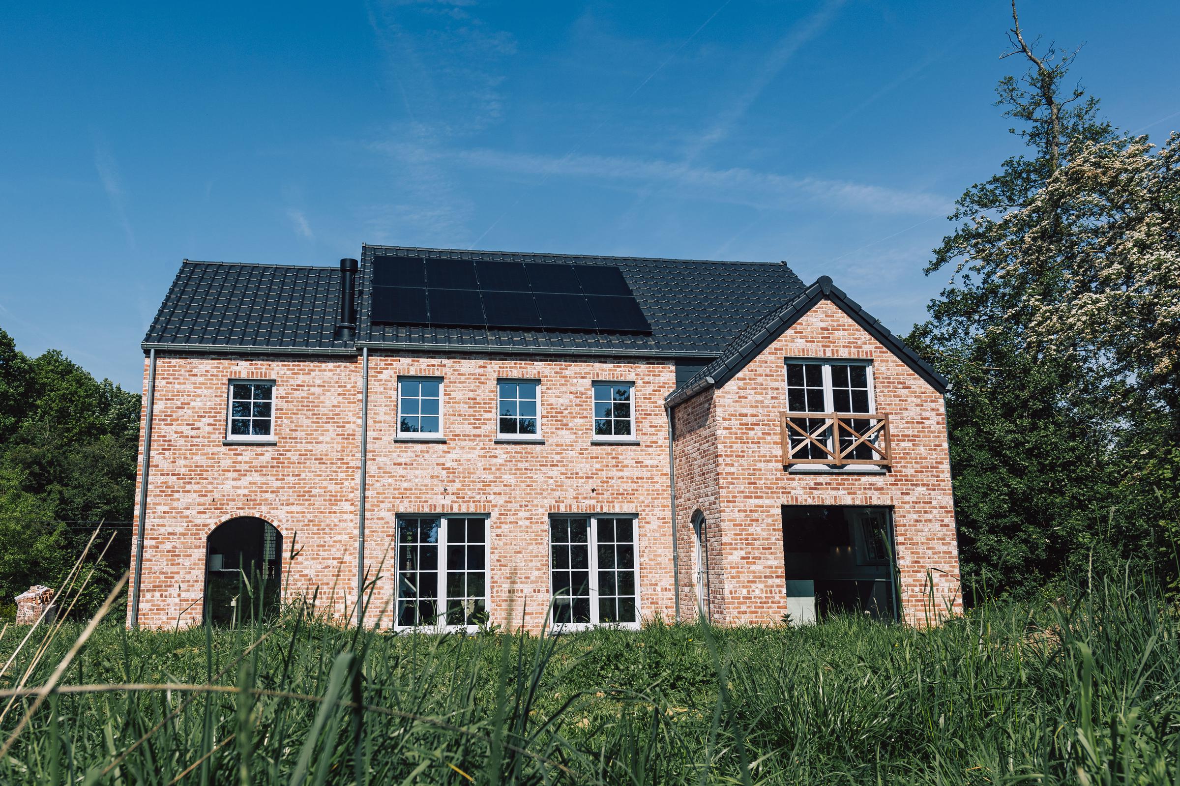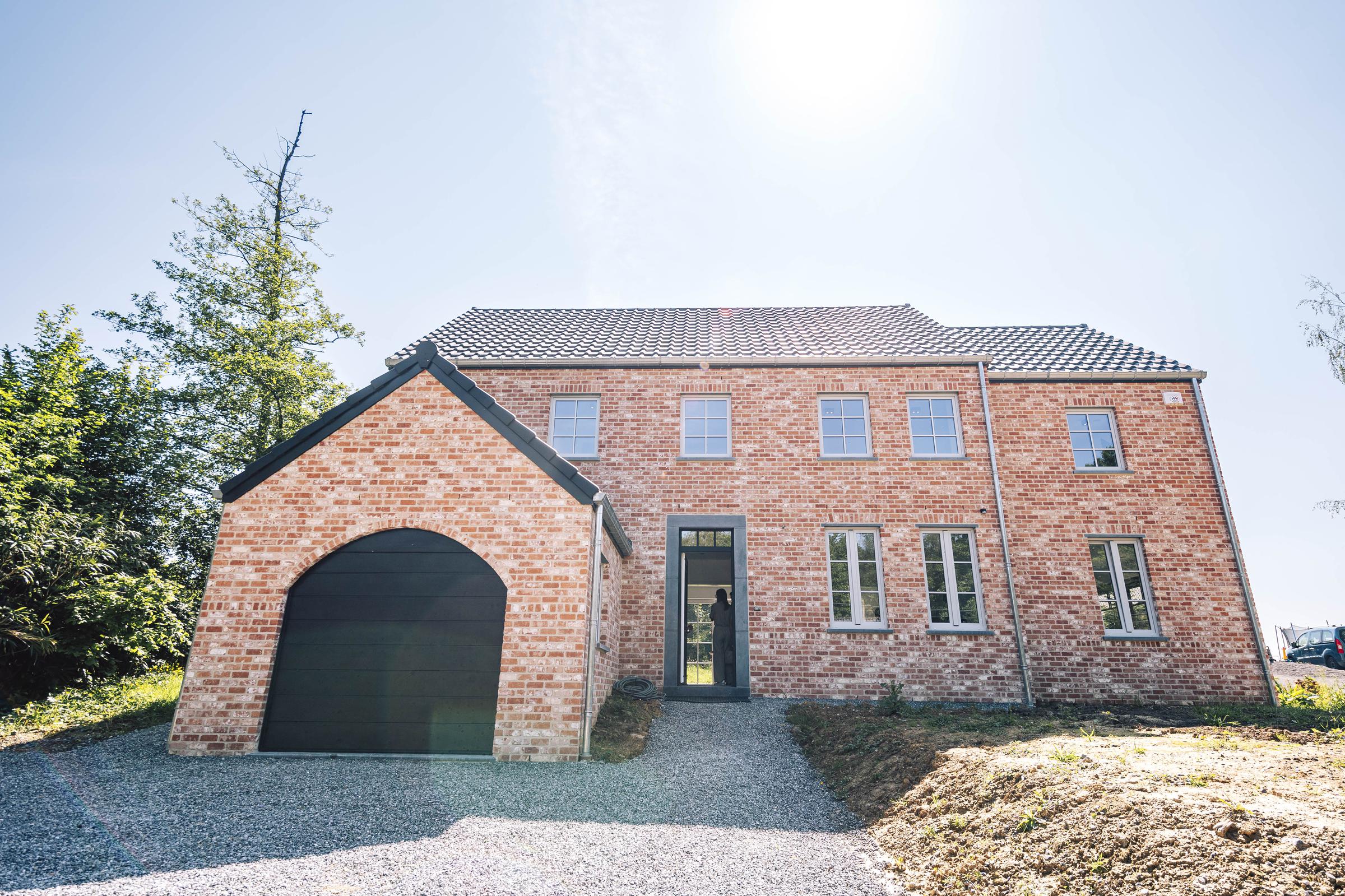 Nous avons construit cette maison clé sur porte à Wasseiges dans la province de Liège. Cette construction de style cottage, allie la brique traditionnelle orangée avec des châssis clairs et foncés, elle a été conçue à partir du modèle PH07.