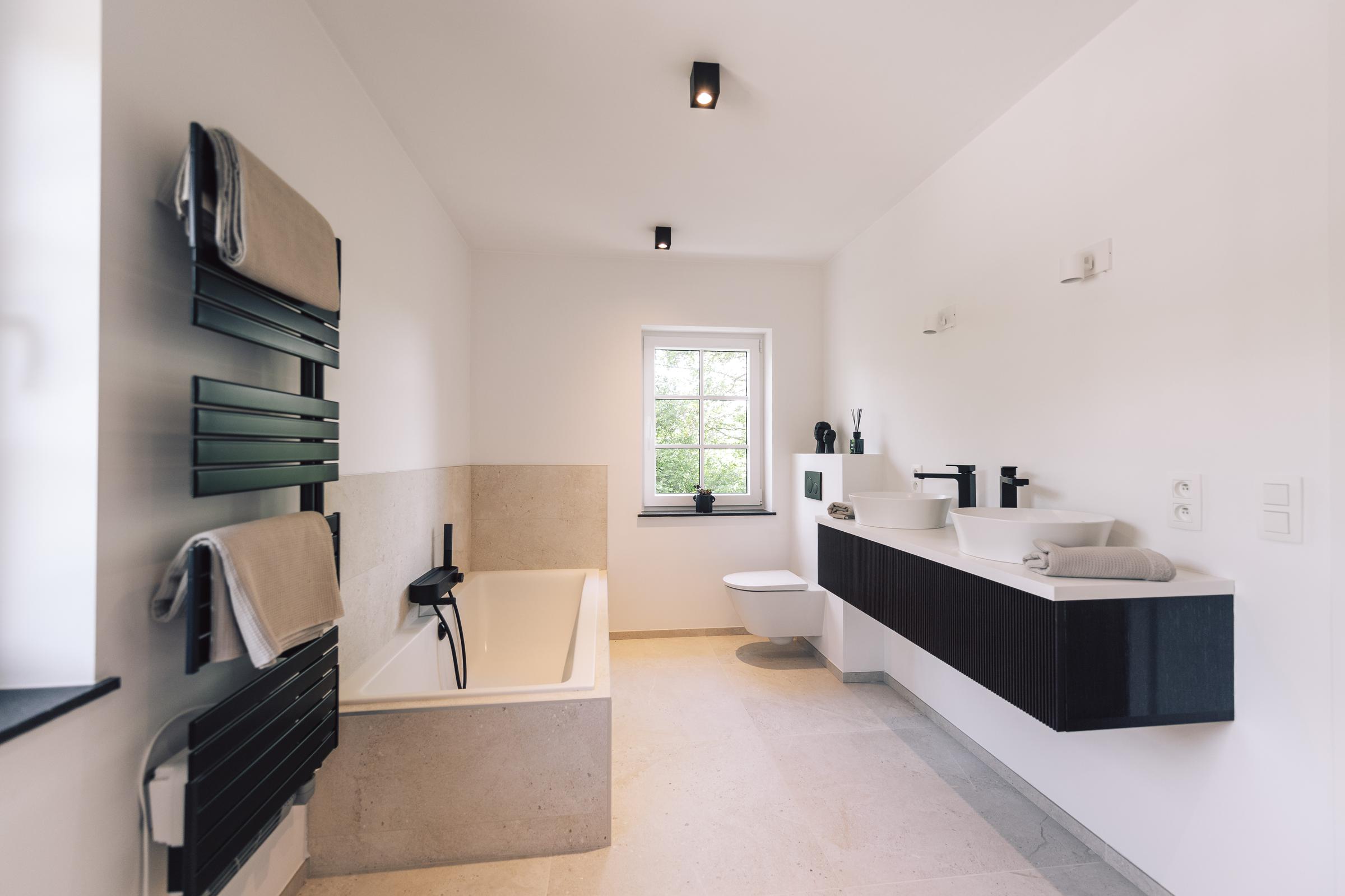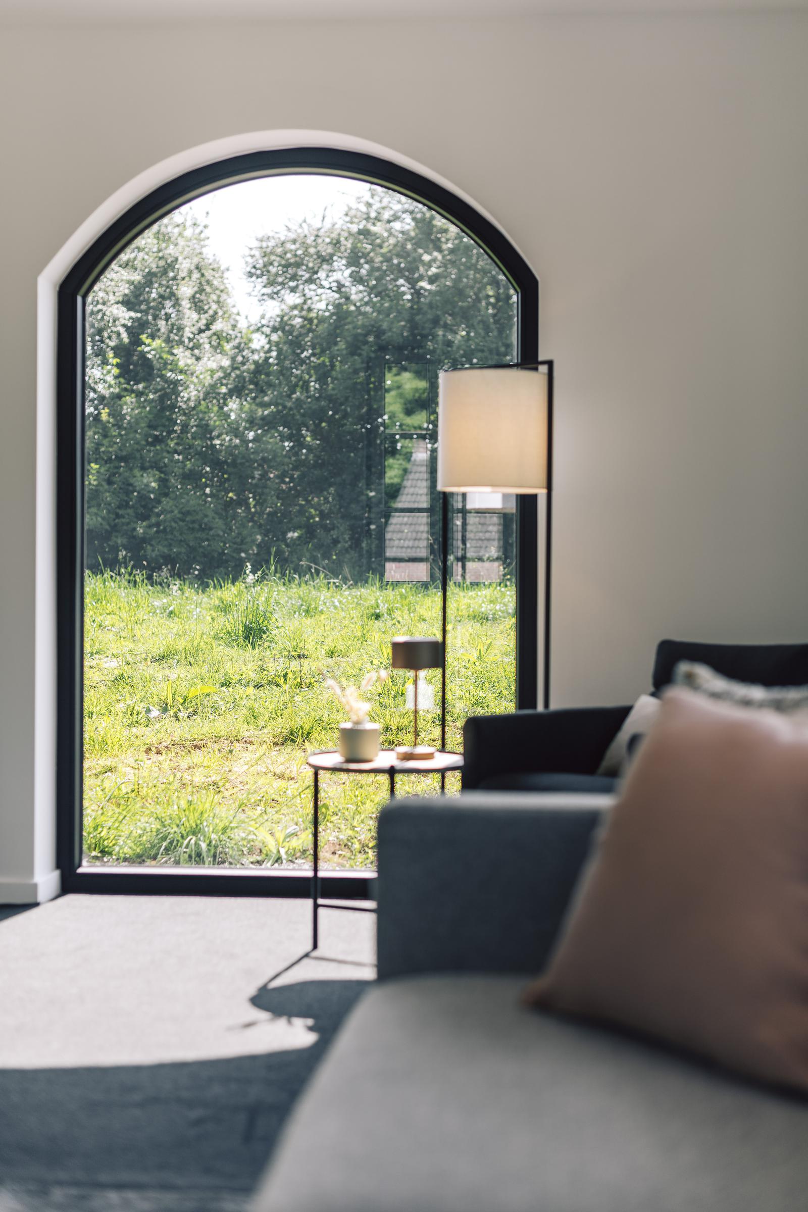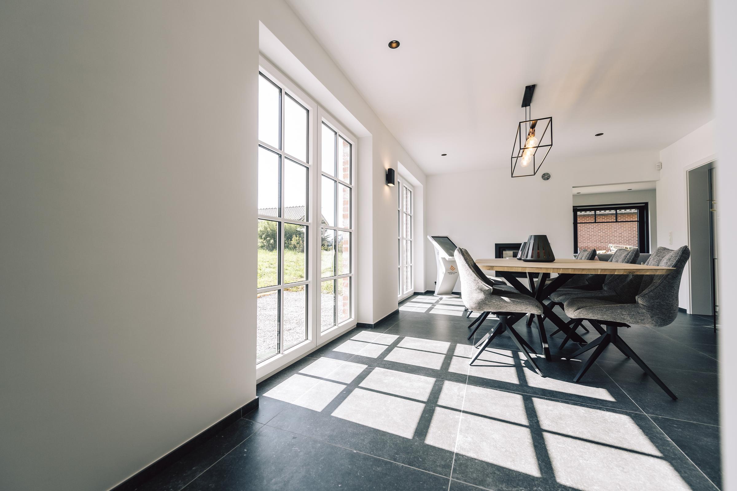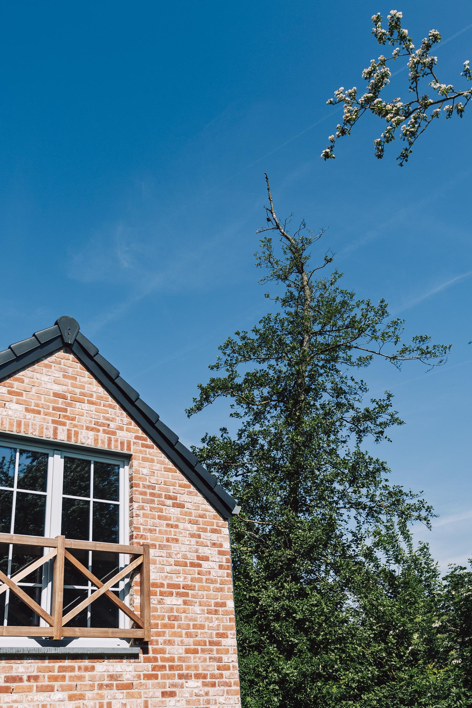 Nous avons construit cette maison clé sur porte à Wasseiges dans la province de Liège. Cette construction de style cottage, allie la brique traditionnelle orangée avec des châssis clairs et foncés, elle a été conçue à partir du modèle PH07.