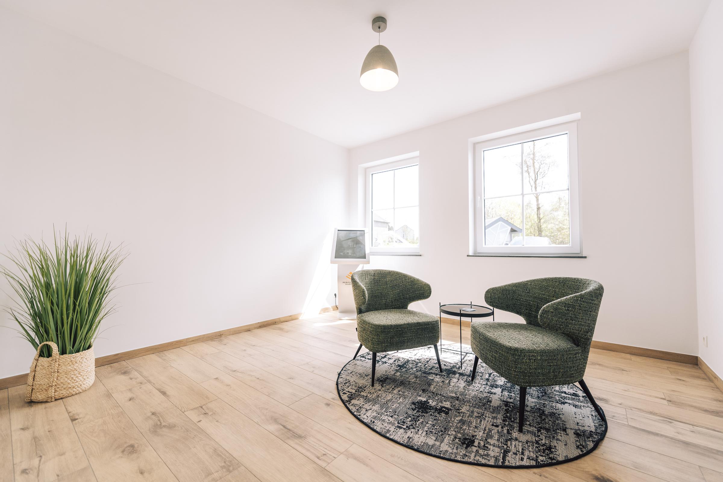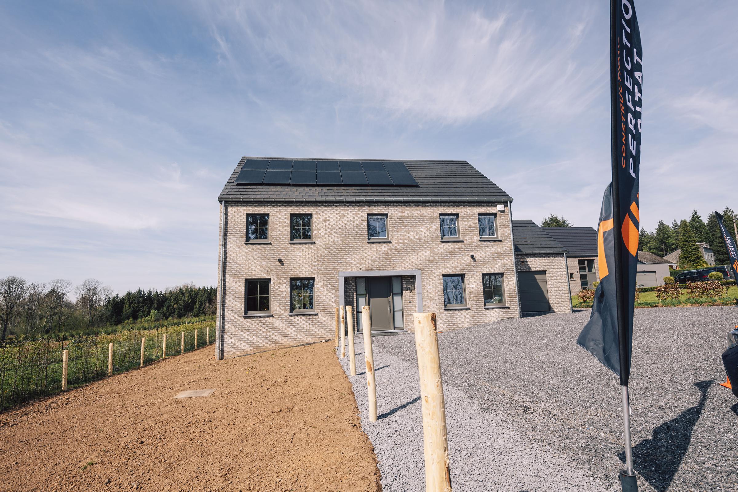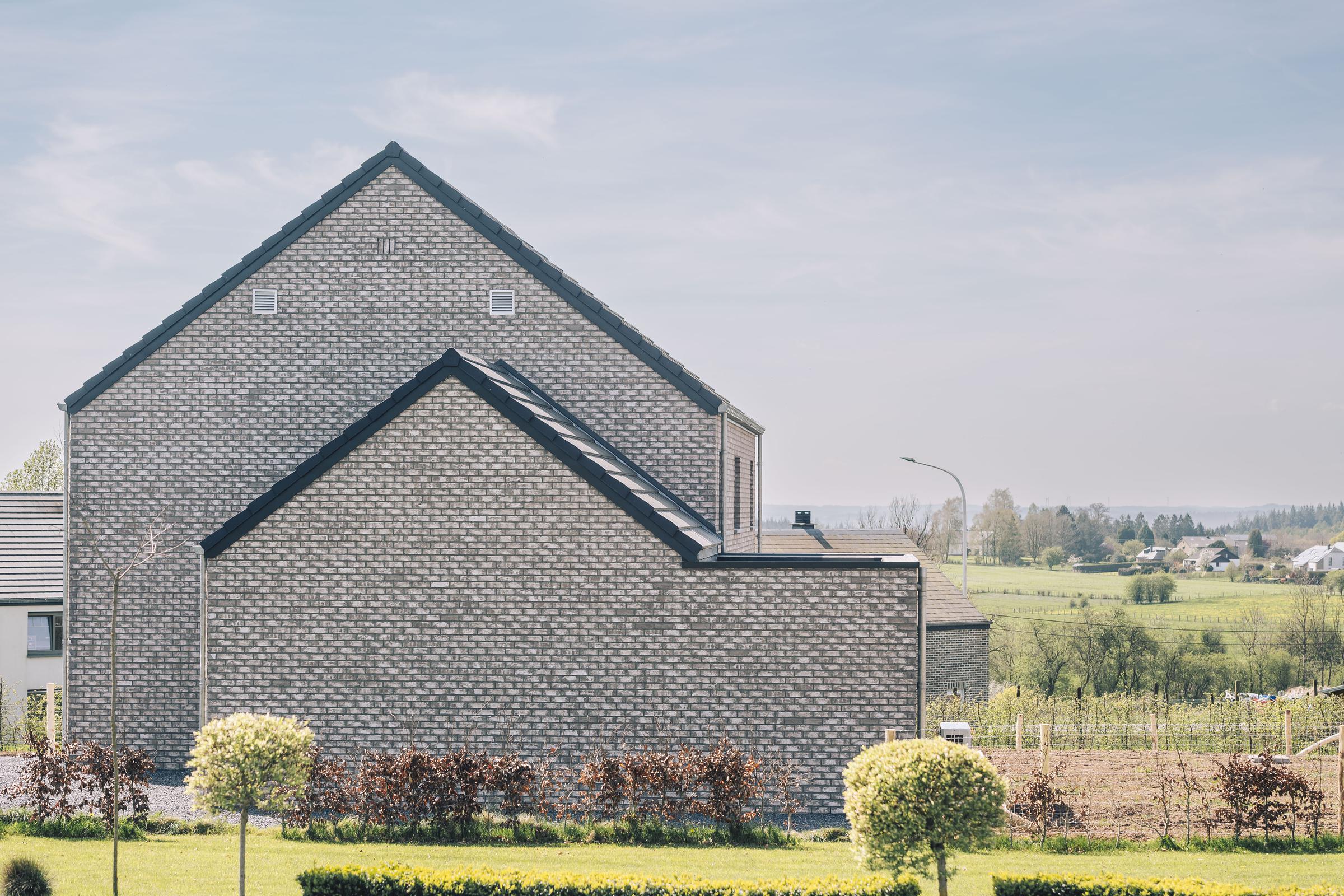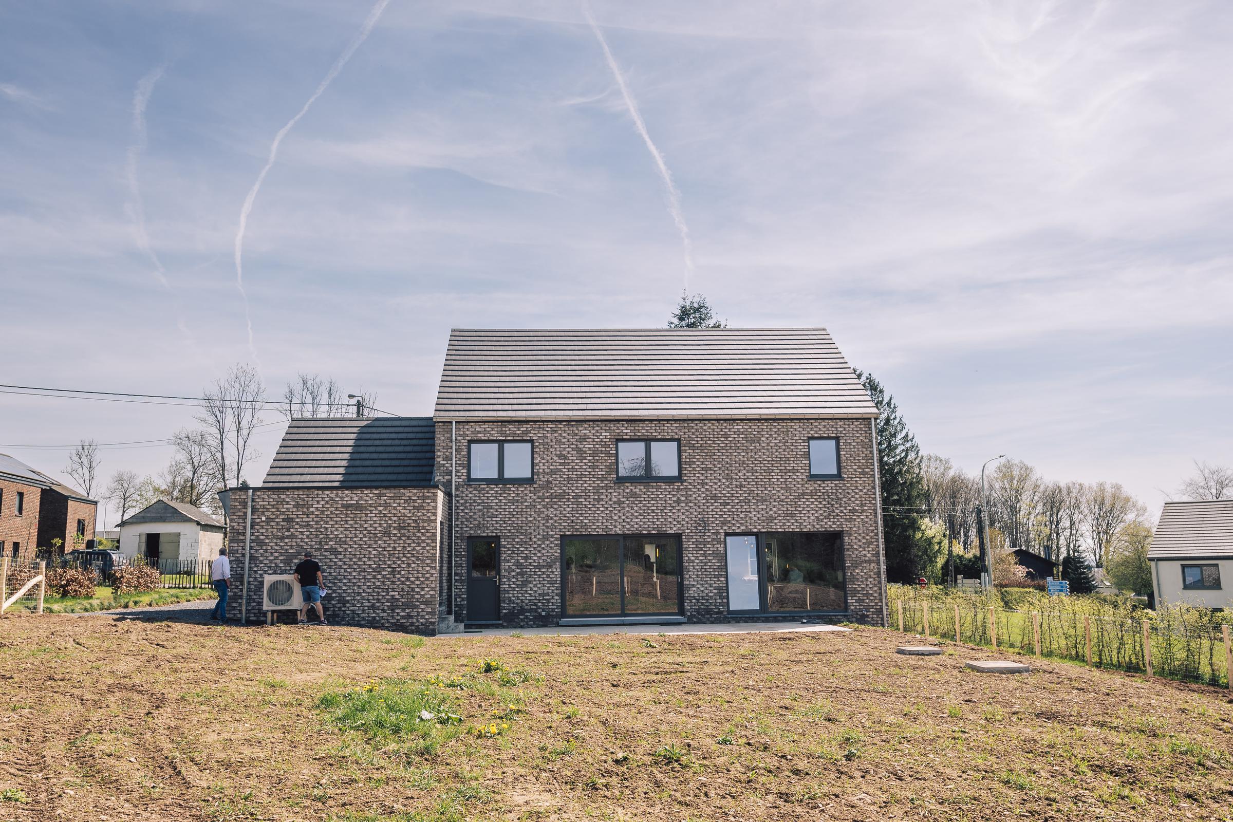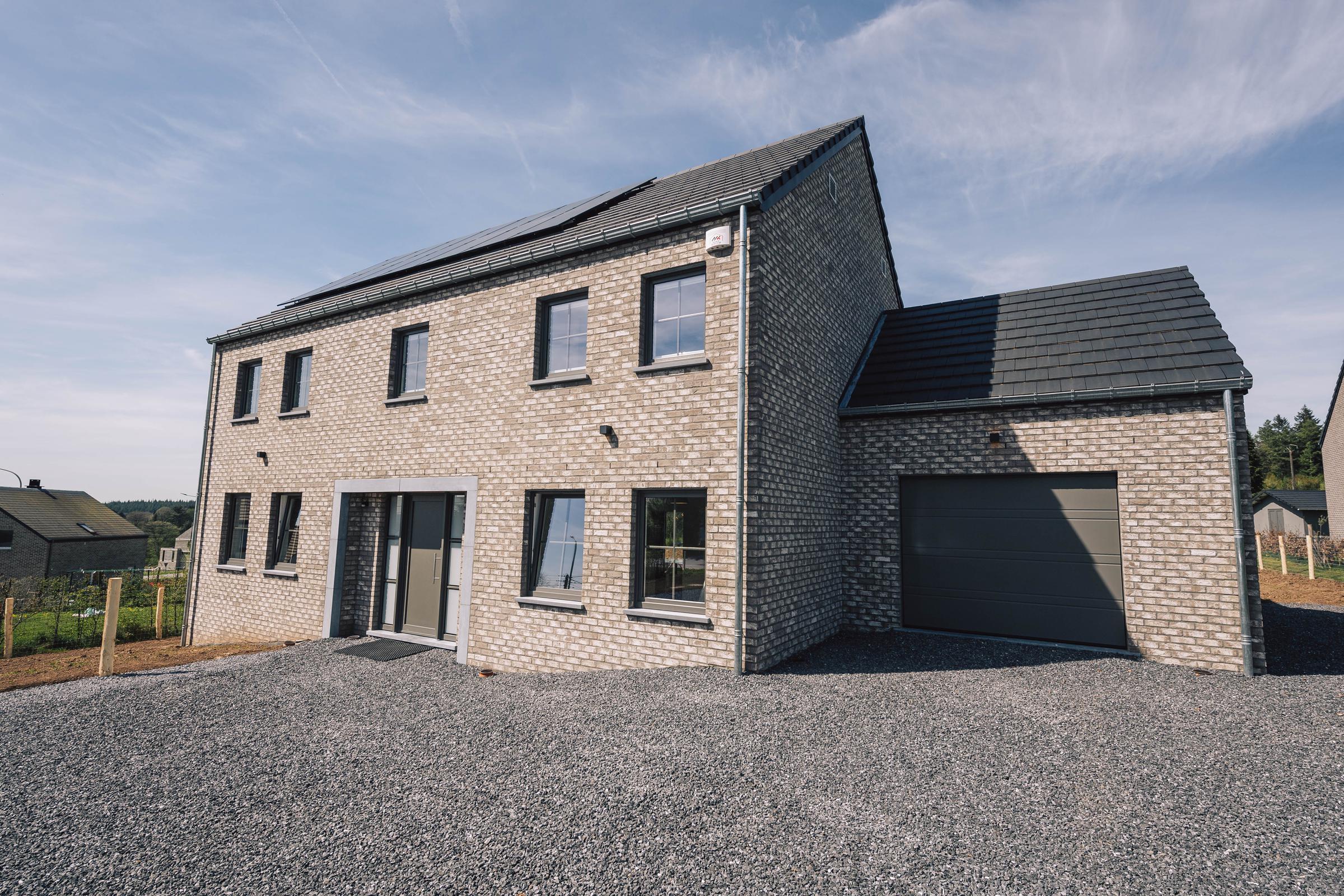 Nous avons construit cette maison clé sur porte à Libin dans la province de Luxembourg. Cette construction intemporelle alliant la brique grise avec des menuiseries dans les mêmes tons, a été conçue à partir du modèle PH31.