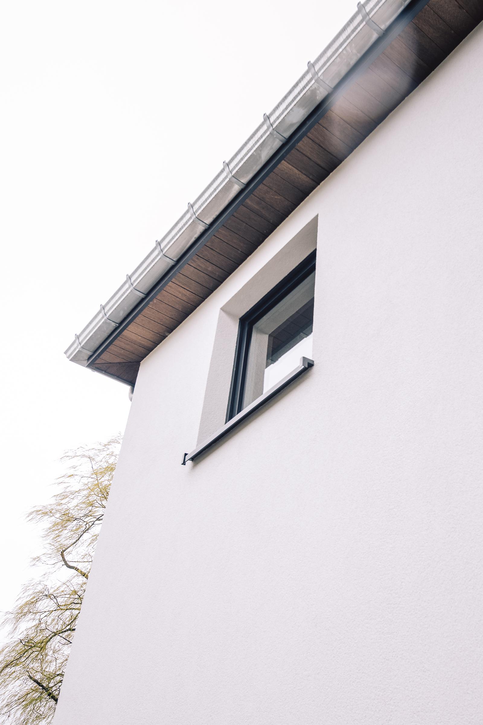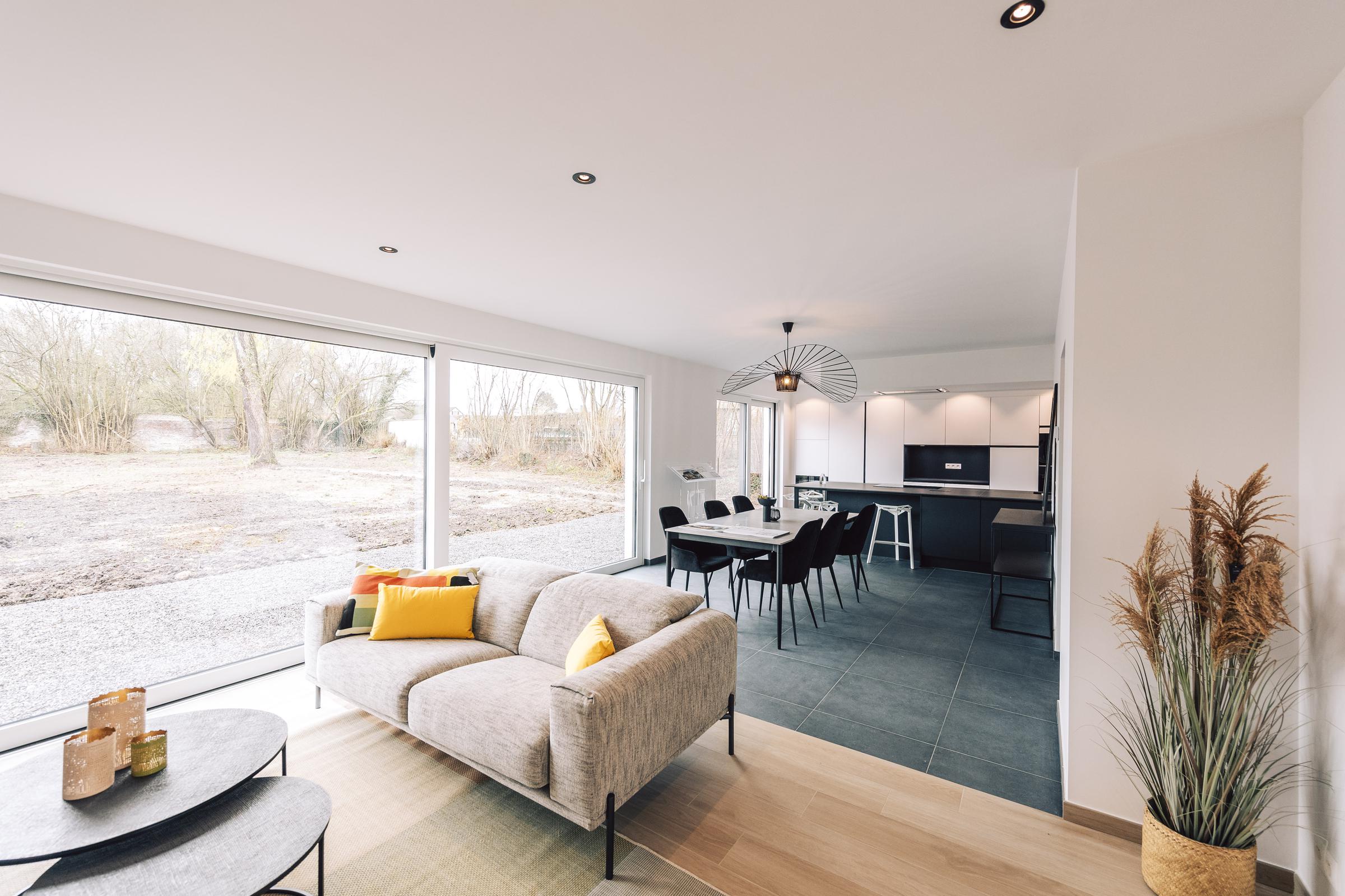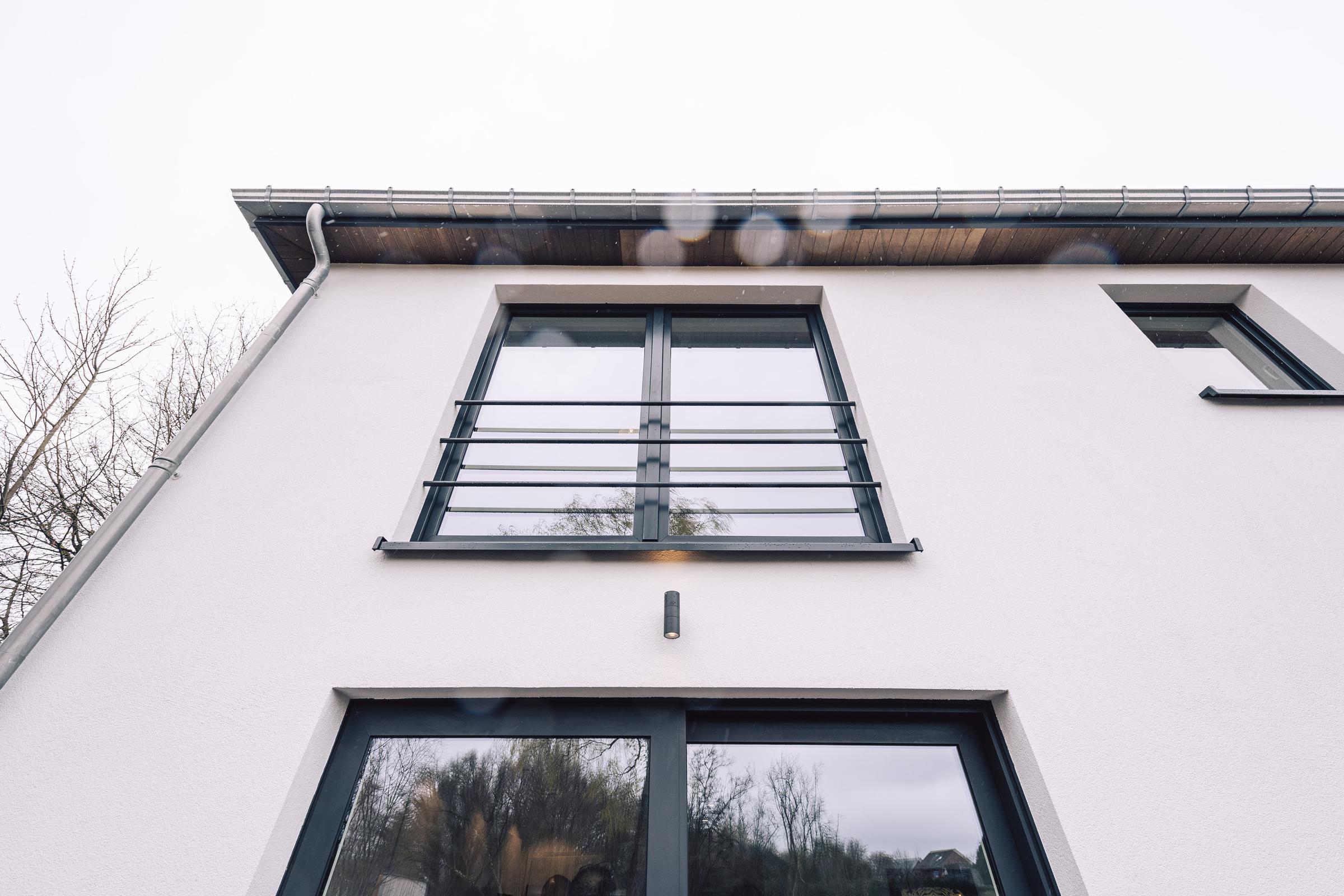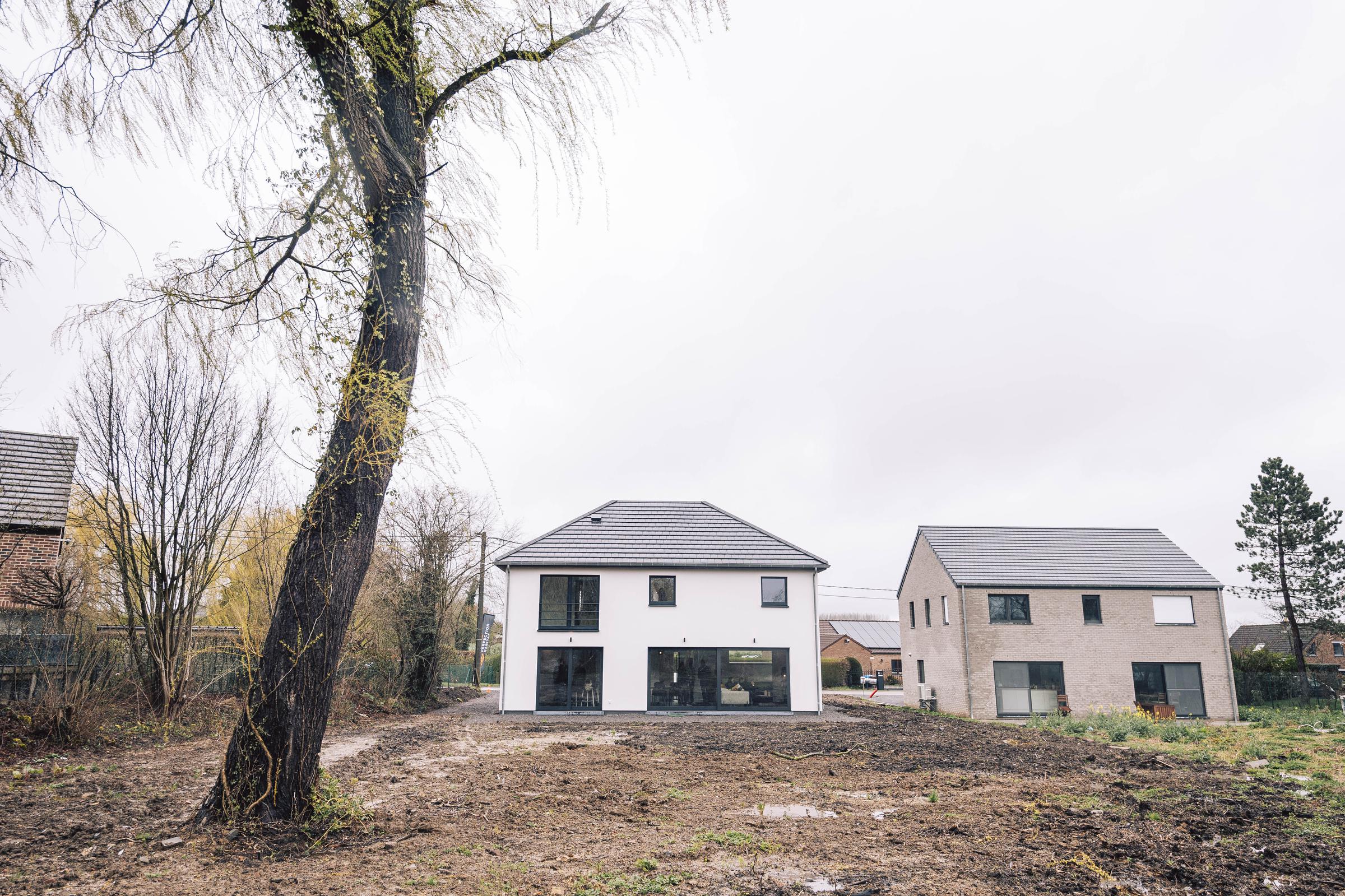 Nous avons construit cette maison clé sur porte à Cognelée, dans la province de Namur. D’un style atypique avec sa toiture 4 pans, son revêtement en crépi blancs sur le volume principal et gris clair sur le sortant et ses menuiseries noires, elle a été conçue à partir de notre modèle d'inspiration PH07, La Rassurante