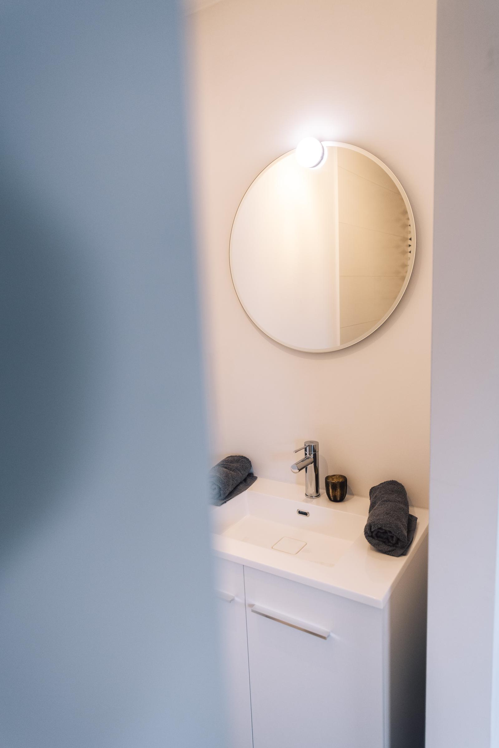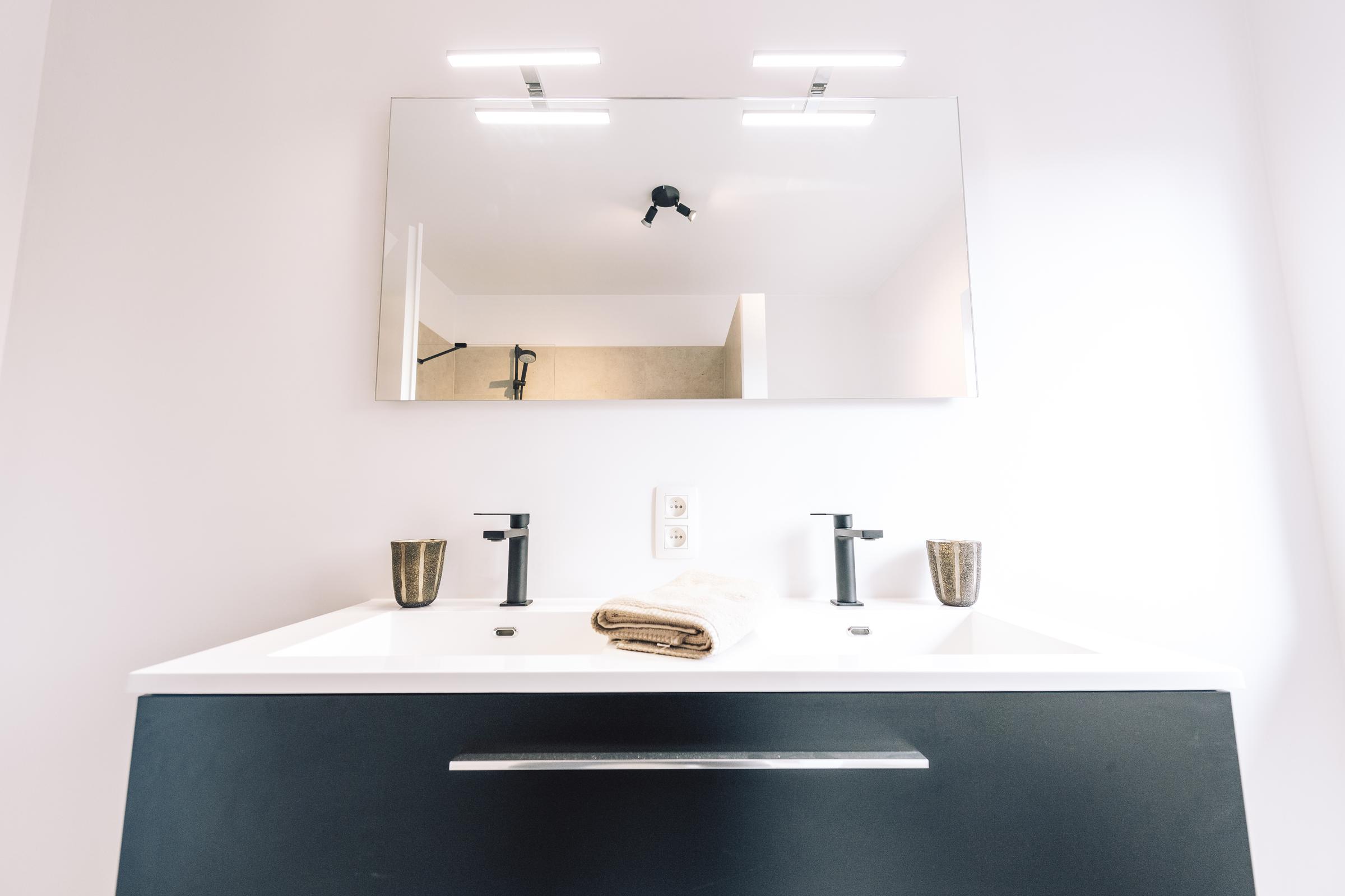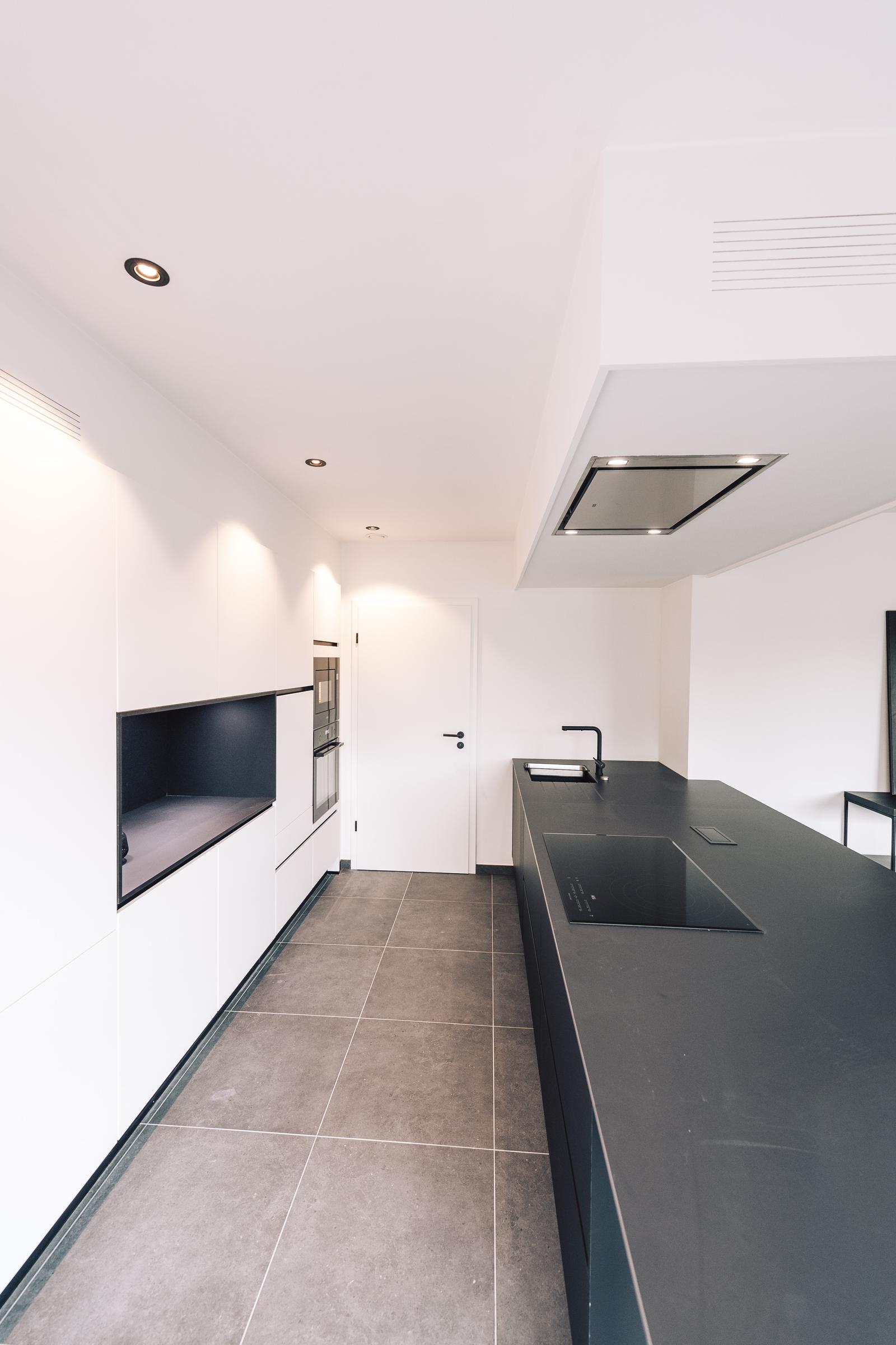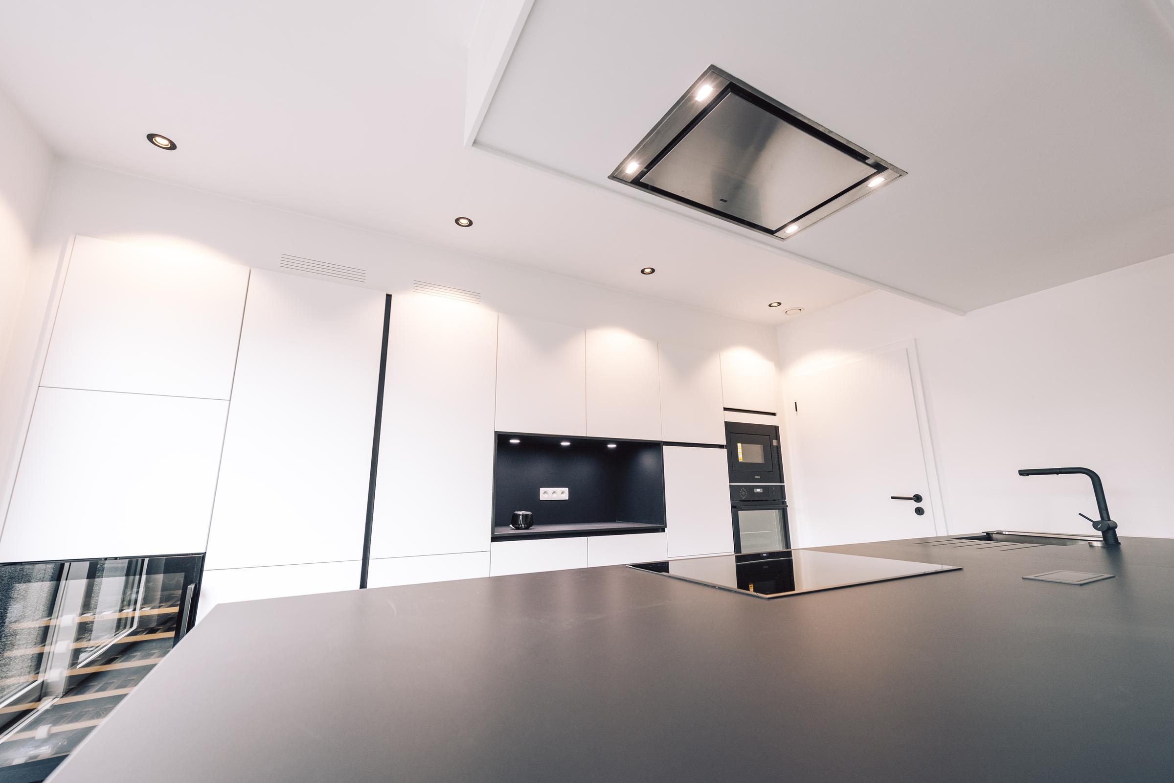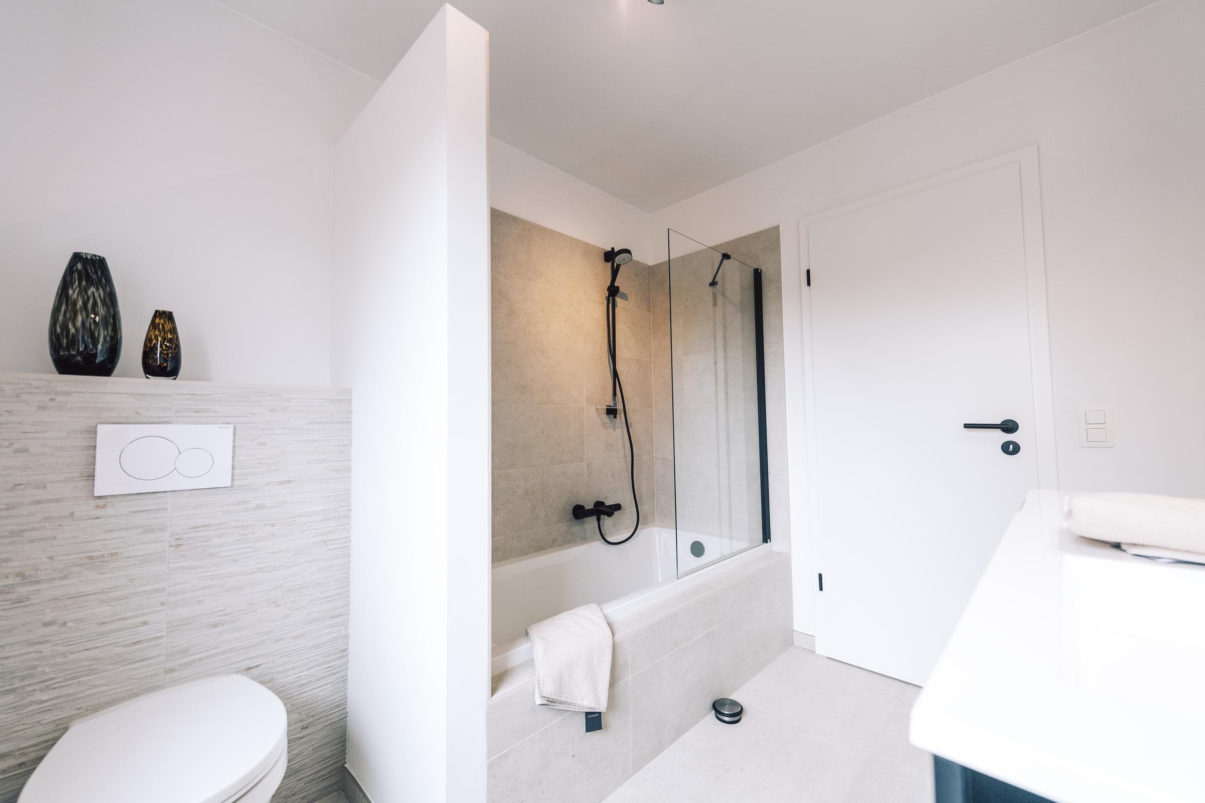 Nous avons construit cette maison clé sur porte à Cognelée, dans la province de Namur. D’un style atypique avec sa toiture 4 pans, son revêtement en crépi blancs sur le volume principal et gris clair sur le sortant et ses menuiseries noires, elle a été conçue à partir de notre modèle d'inspiration PH07, La Rassurante