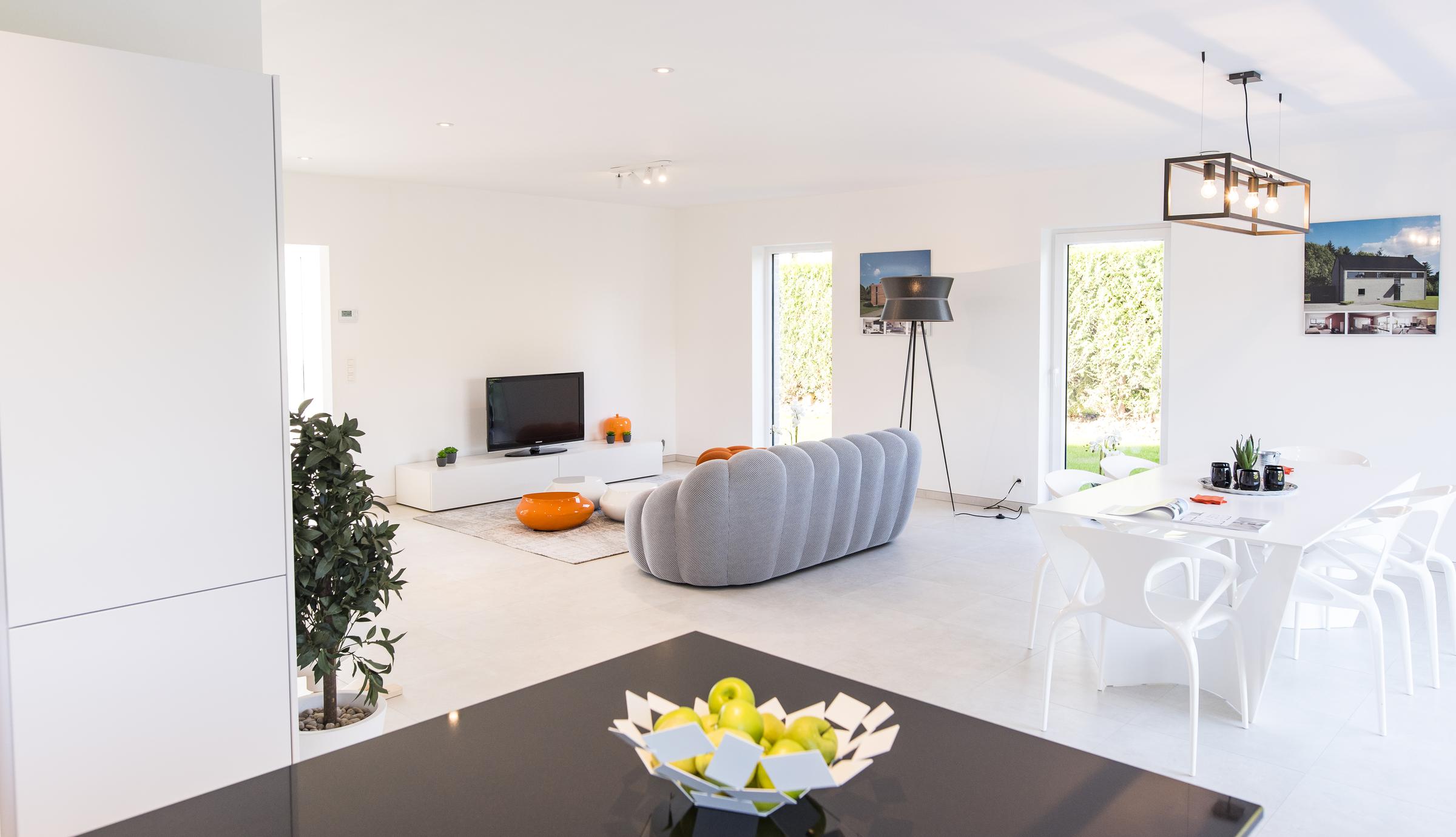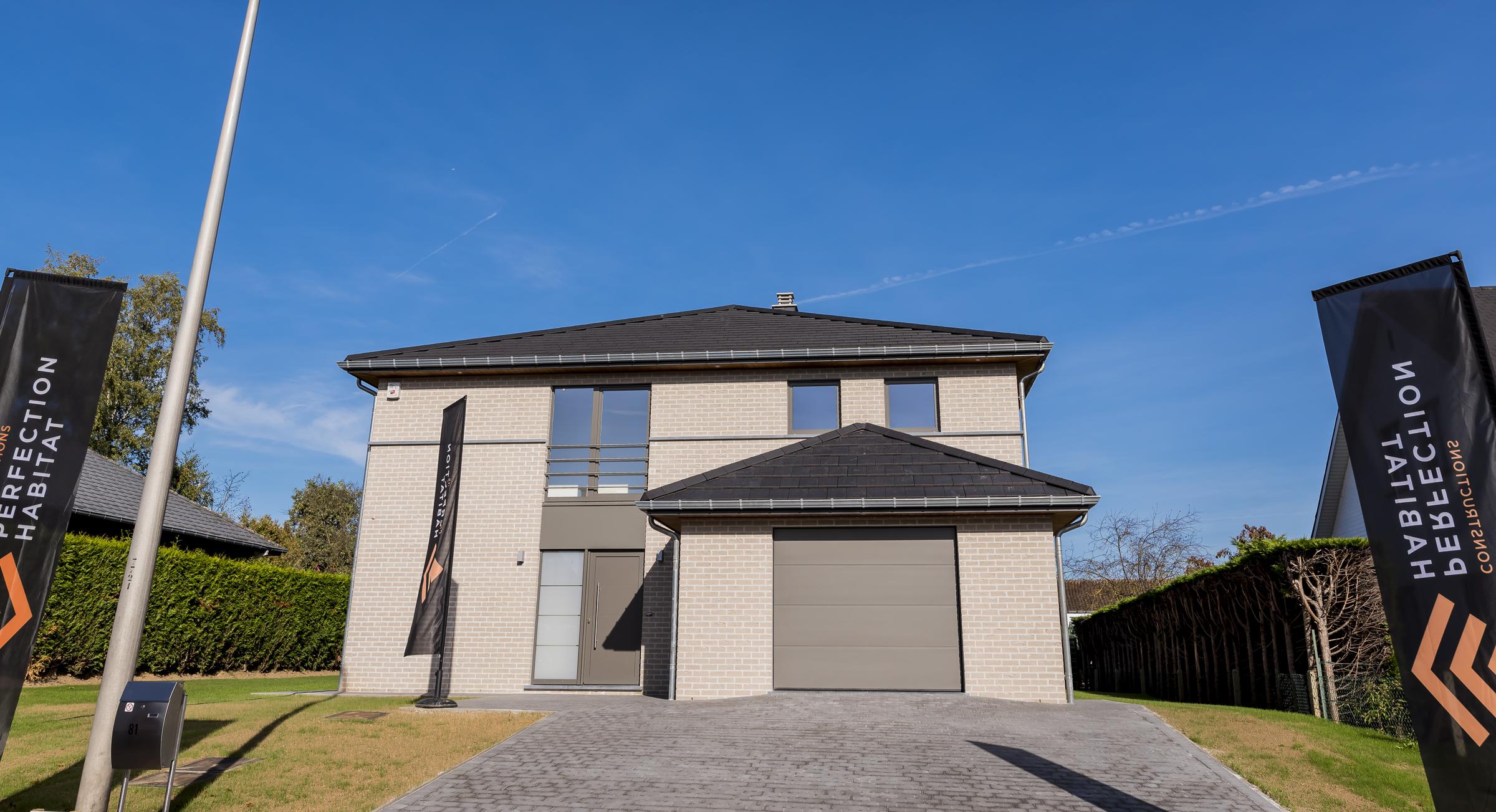 Nous avons construit cette maison à Rhode-Saint-Genèse, dans la province du Brabant Wallon. Elle a été conçue à partir des plans du modèle PH17 . Au départ d’un plan carré et d'une toiture à quatre versants, cette maison propose de beaux espaces ouverts.