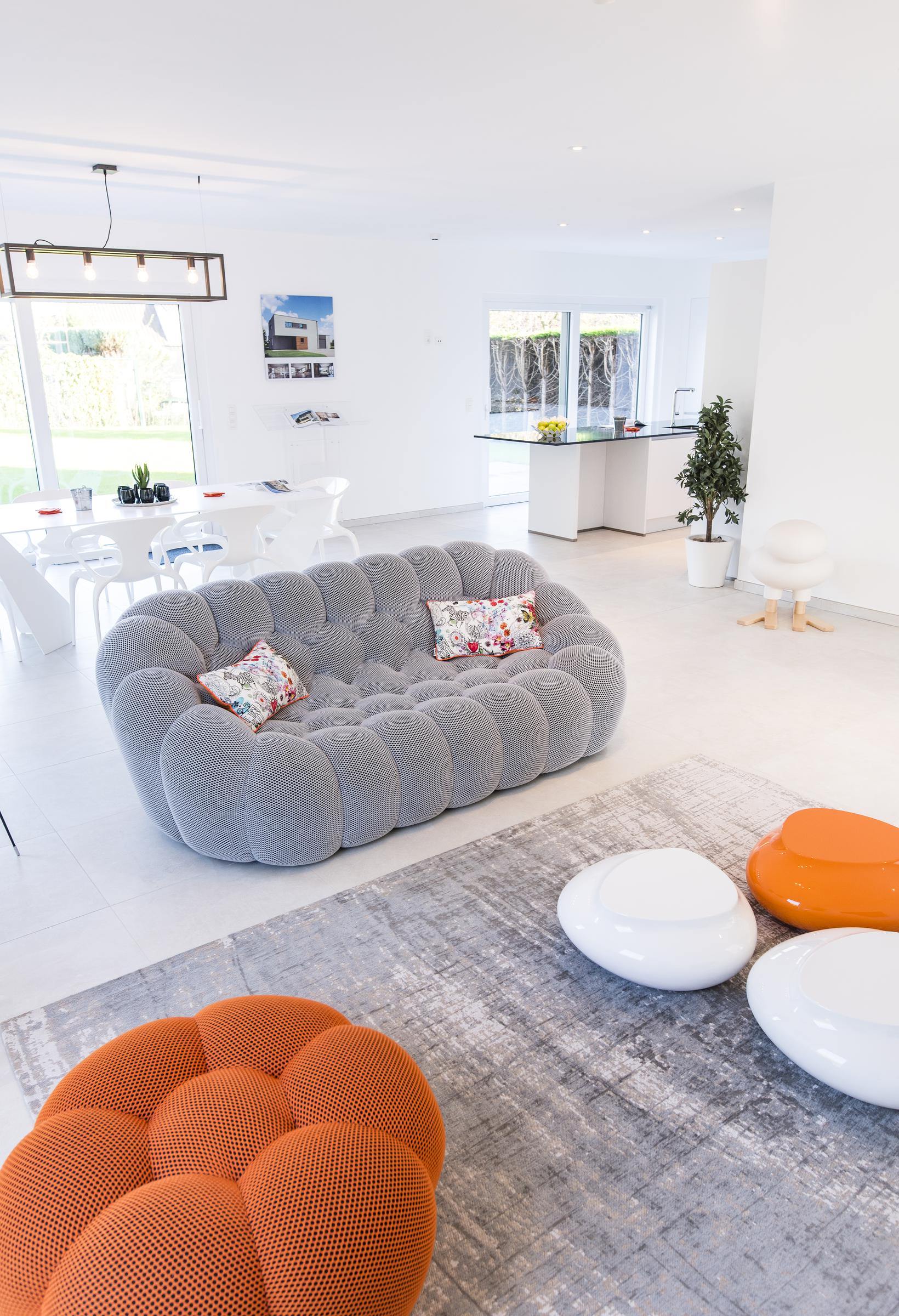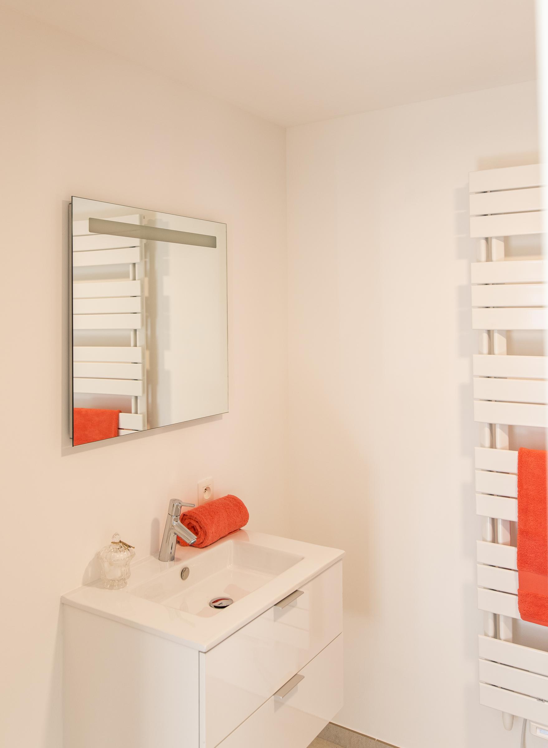 Plusieurs adaptations ont été apportées afin de satisfaire les besoins et envies des propriétaires. La principale concerne l'agrandissement des volumes au rez-de-chaussée et à l'étage. En créant un léger sortant en façade avant, un espace suffisant s'est libéré entre la cuisine et le garage pour y aménager une belle buanderie.