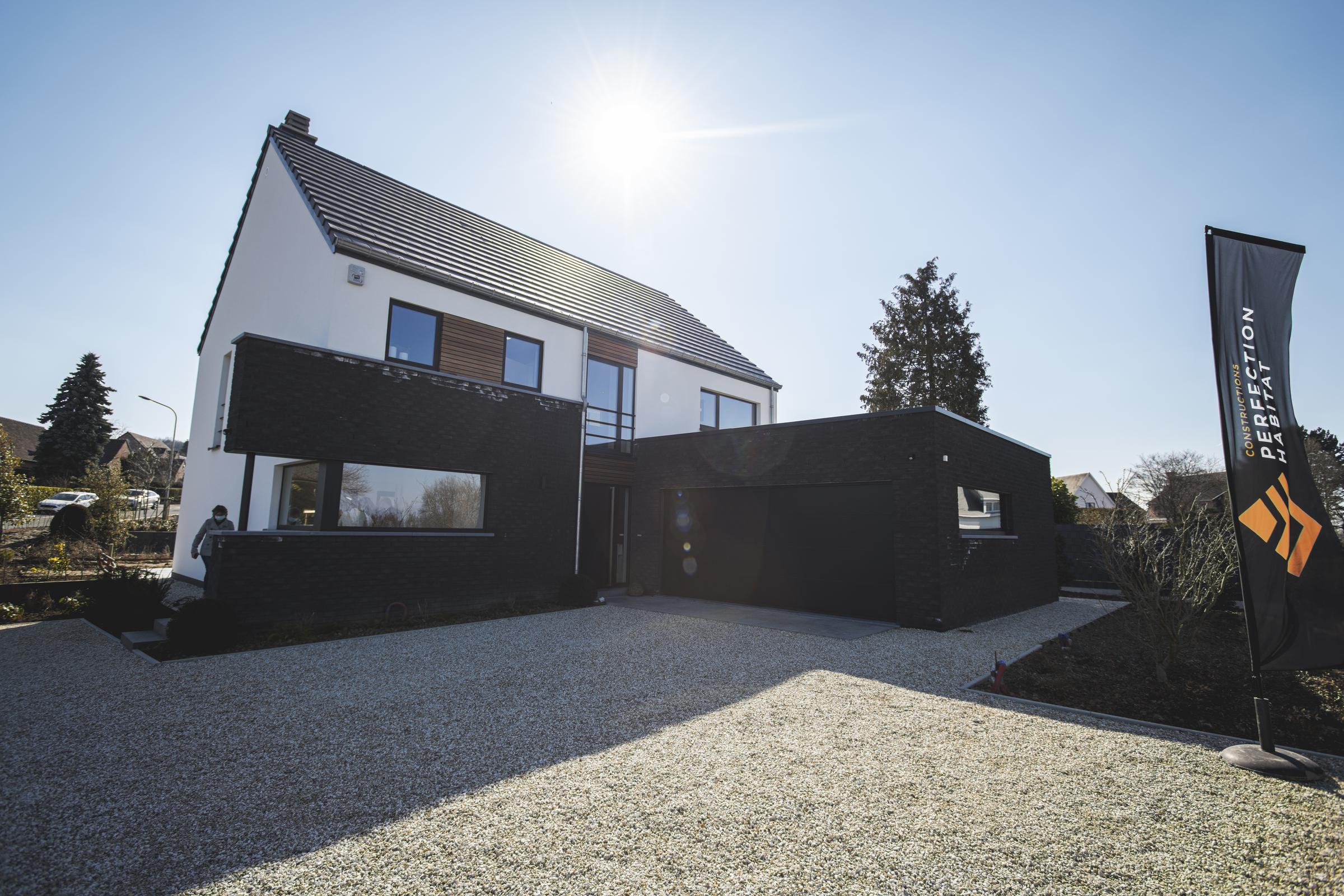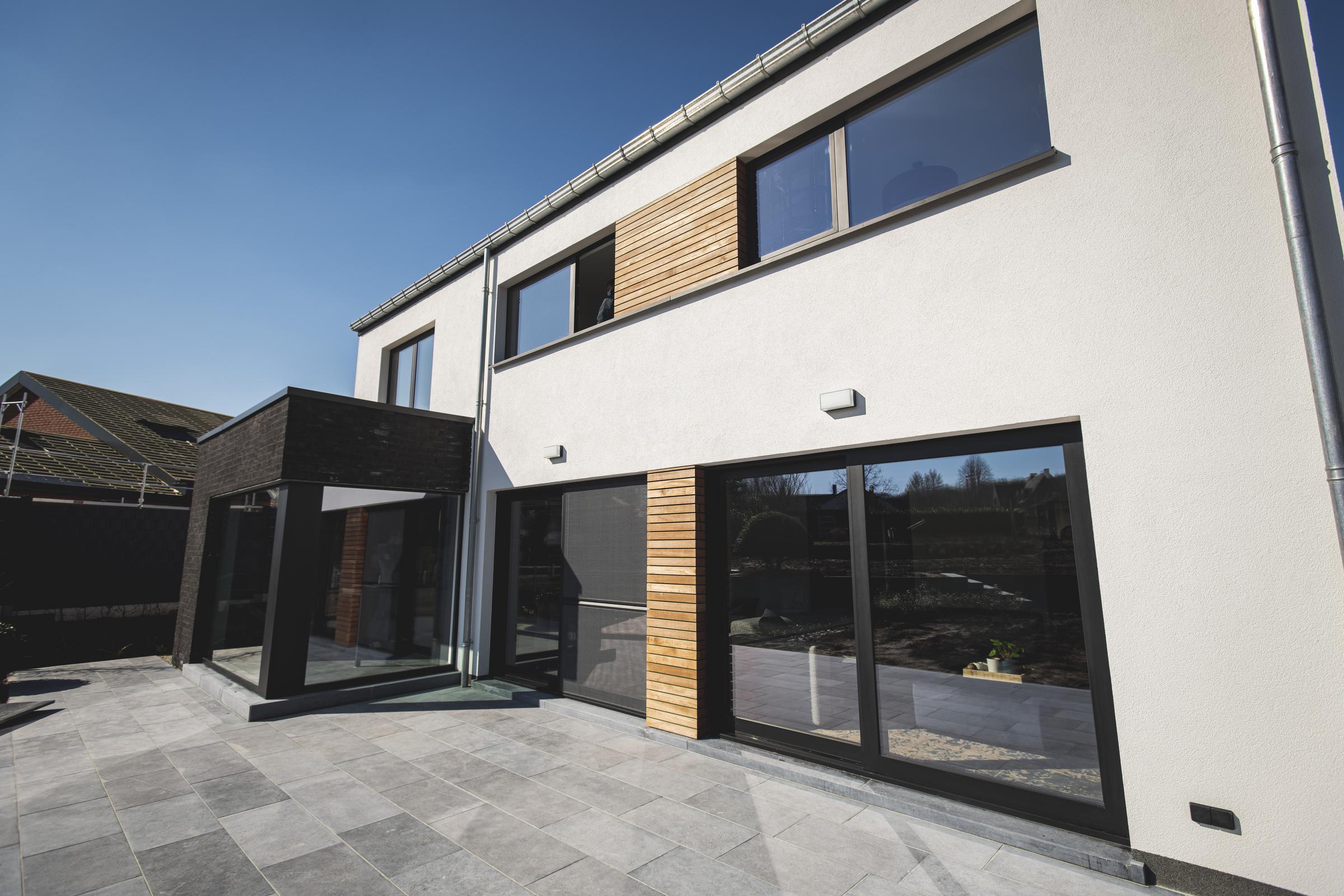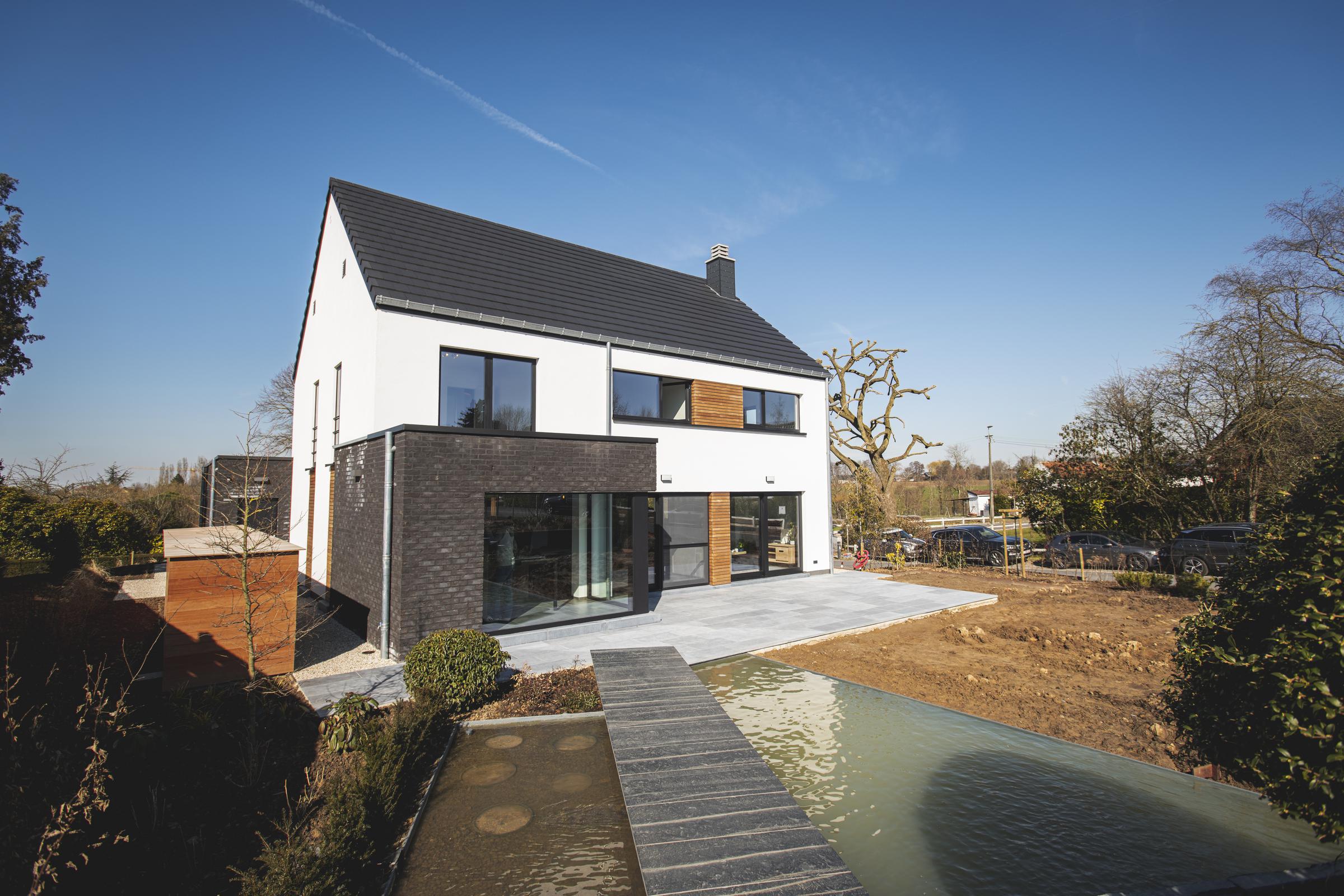 Nous avons construit cette nouvelle habitation à Braine-le-Comte, dans le Hainaut. D’un style très contemporain, elle a été conçue à partir des plans du modèle PH31.