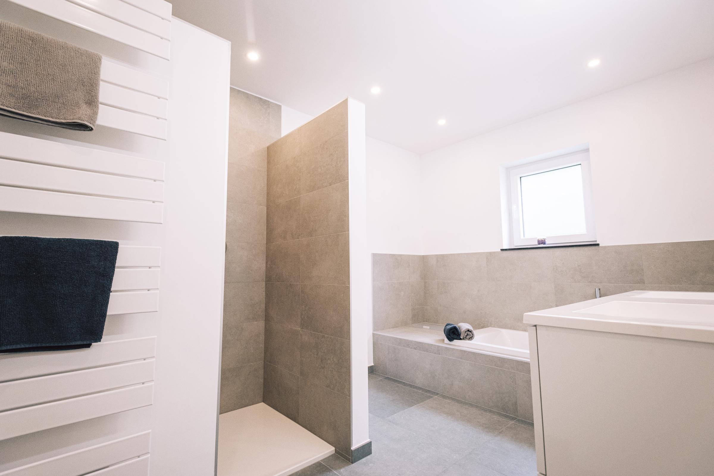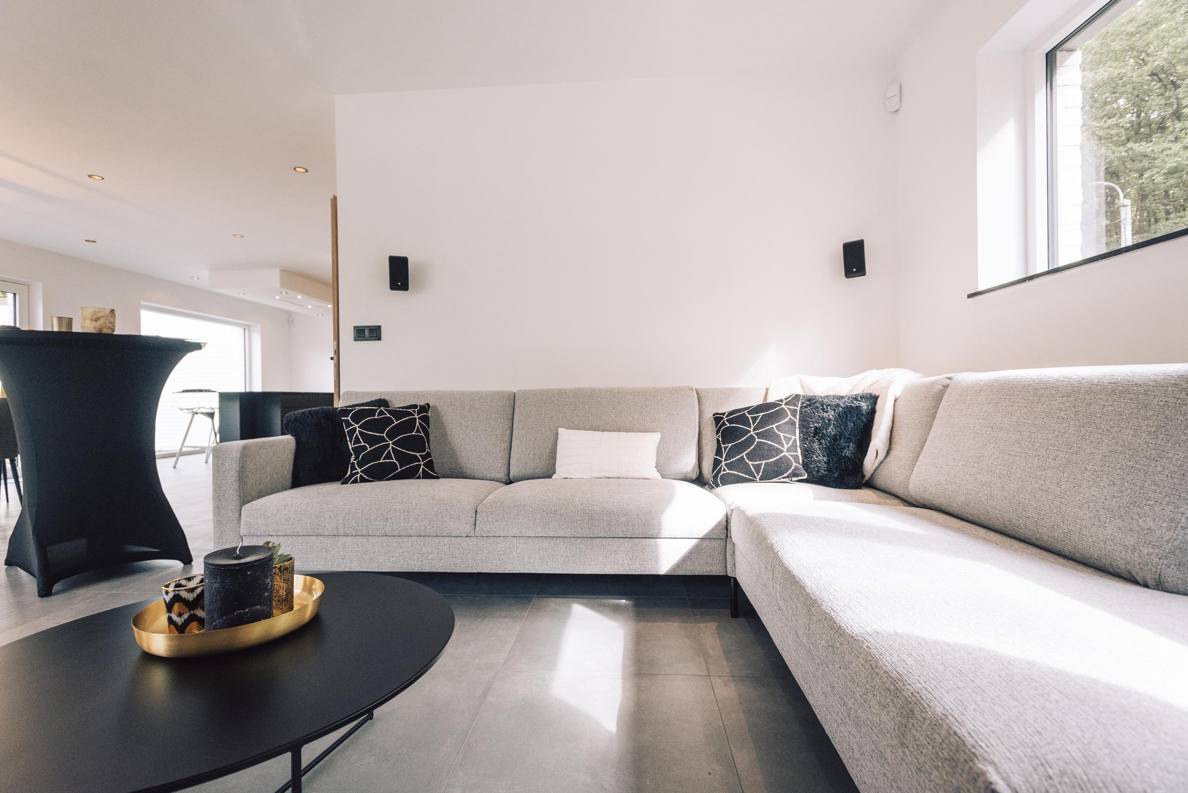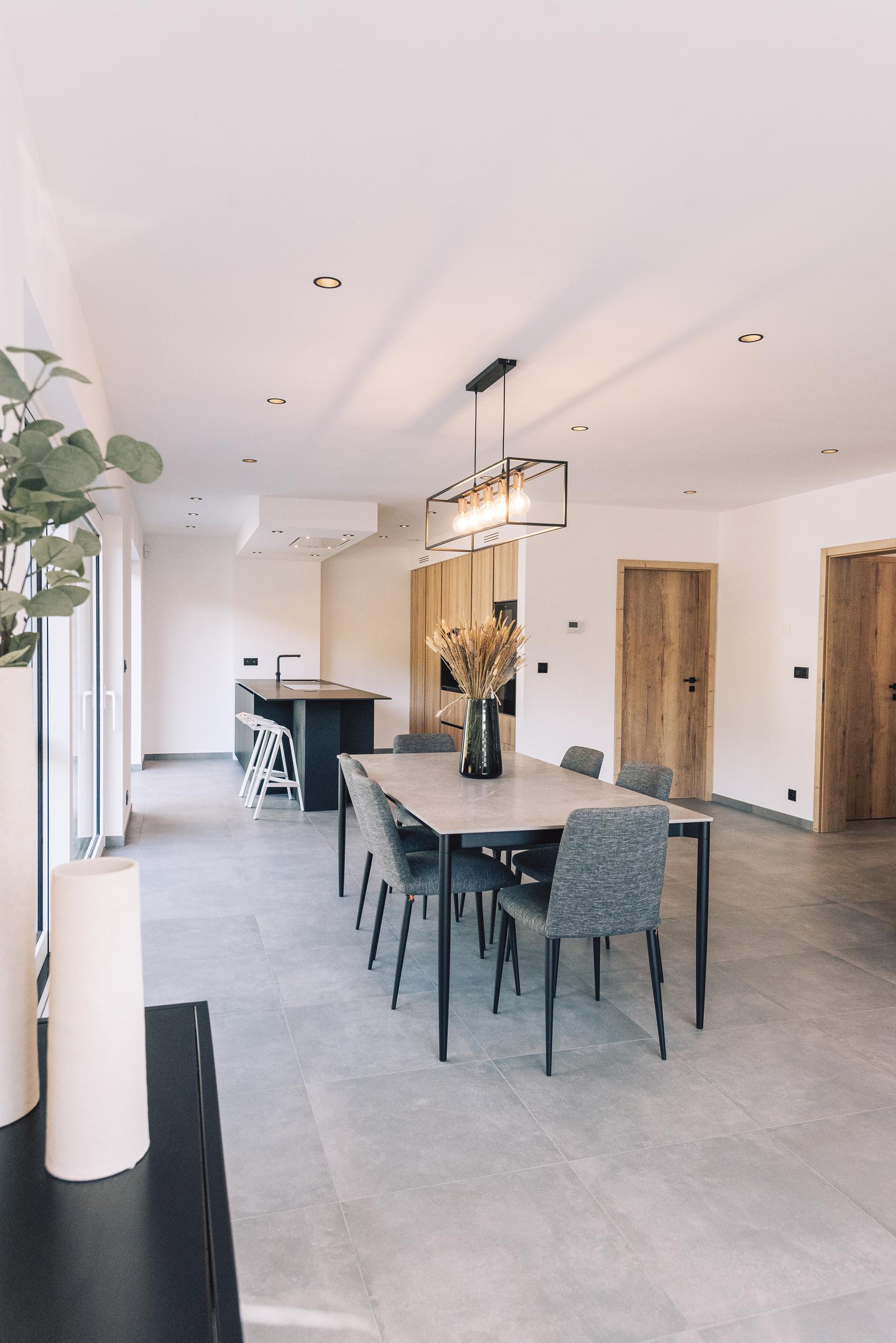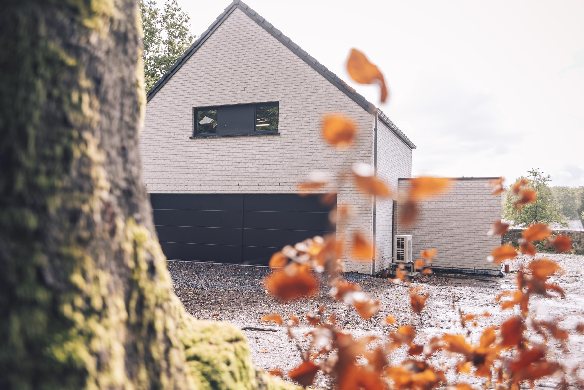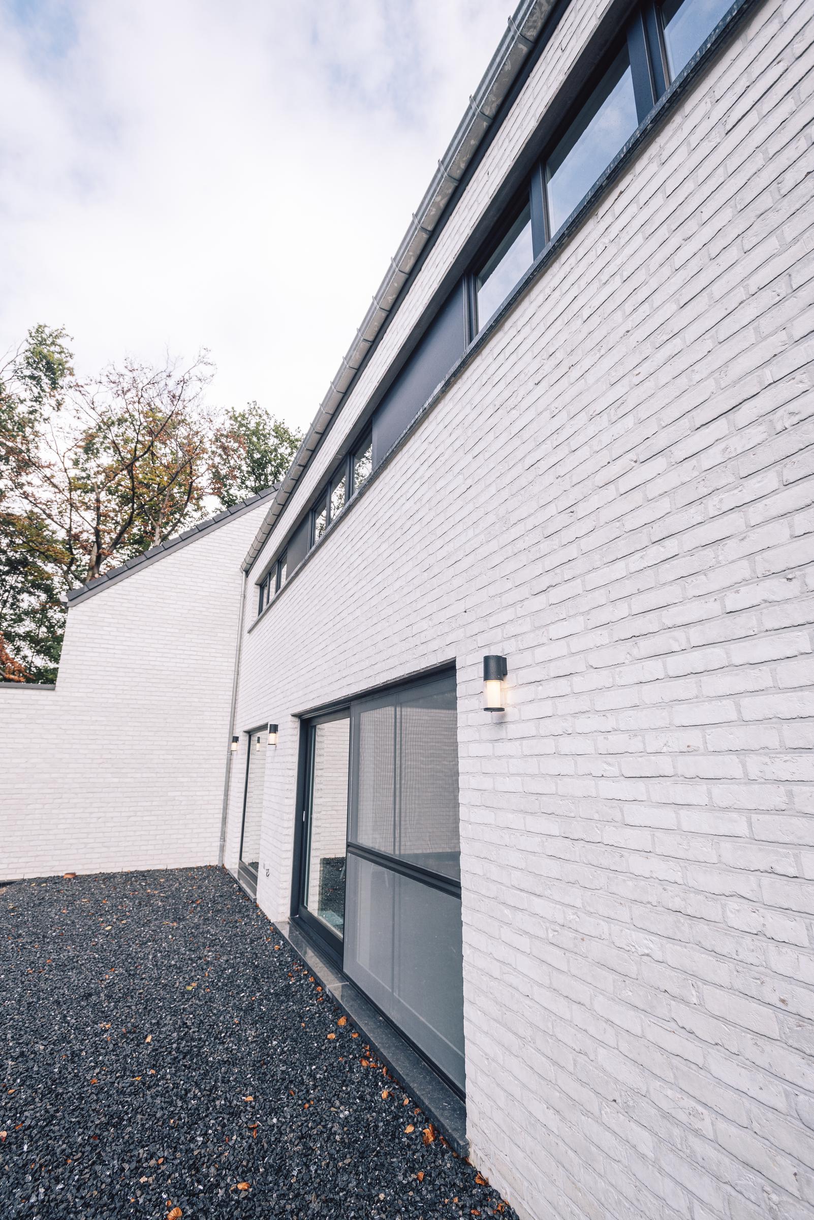 Nous avons construit cette maison clé sur porte à TROOZ, dans la province de Liège. D’un style moderne avec son revêtement en briques blanches et ses menuiseries extérieures noires, elle a été conçue à partir du modèle PH34.