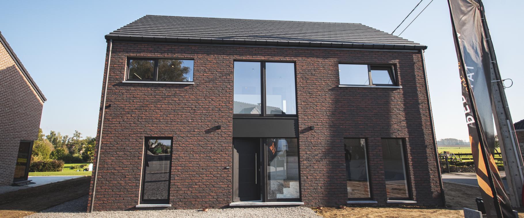 Nous avons construit cette maison clé sur porte à Fernelmont, dans la province de Liège. D’un style moderne avec son revêtement en briques blanches et ses menuiseries extérieures noires, elle a été conçue à partir du modèle PH42.